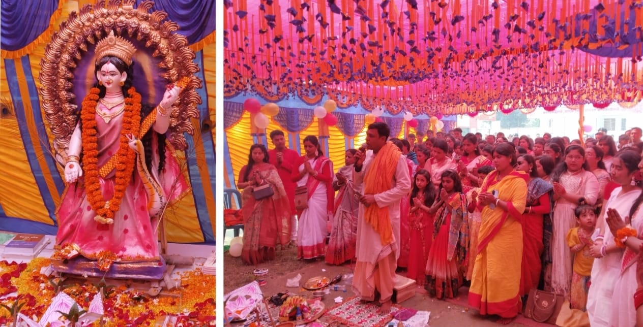 নবাবগঞ্জ সরকারি মহিলা কলেজে উৎসবমুখর পরিবেশে সরস্বতী পূজা উদযাপিত